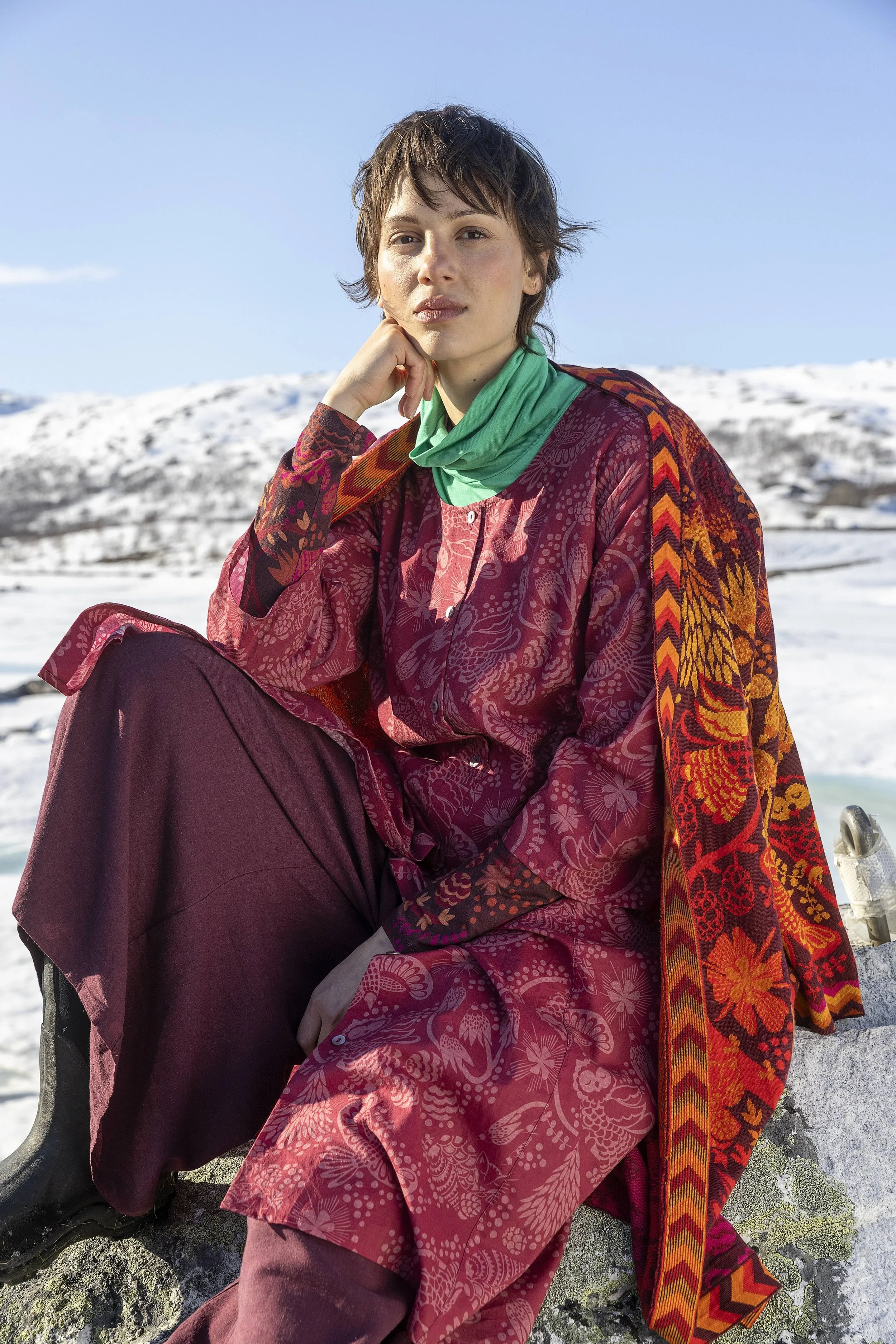 3 Draw the knife back gradually, revealing a gentle spiral like a ribbon shaving. The knife’s pace is regulated, being naturally slowed by your body, with the tip always upright and angled away, all while the wood shields your non-dominant hand. Focus on applying a steady, consistent movement, drawing back from the elbow, brushing your forearm against your hip. Look down the knife’s edge. Focus on the angle with which the bevel is being introduced to the wood.