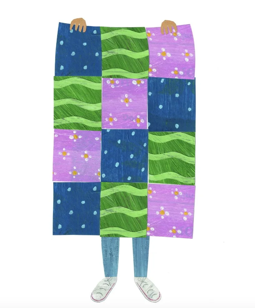 A good use for any moth-eaten jumpers – sew them into a patchwork blanket for cosy reading sessions by the fire.