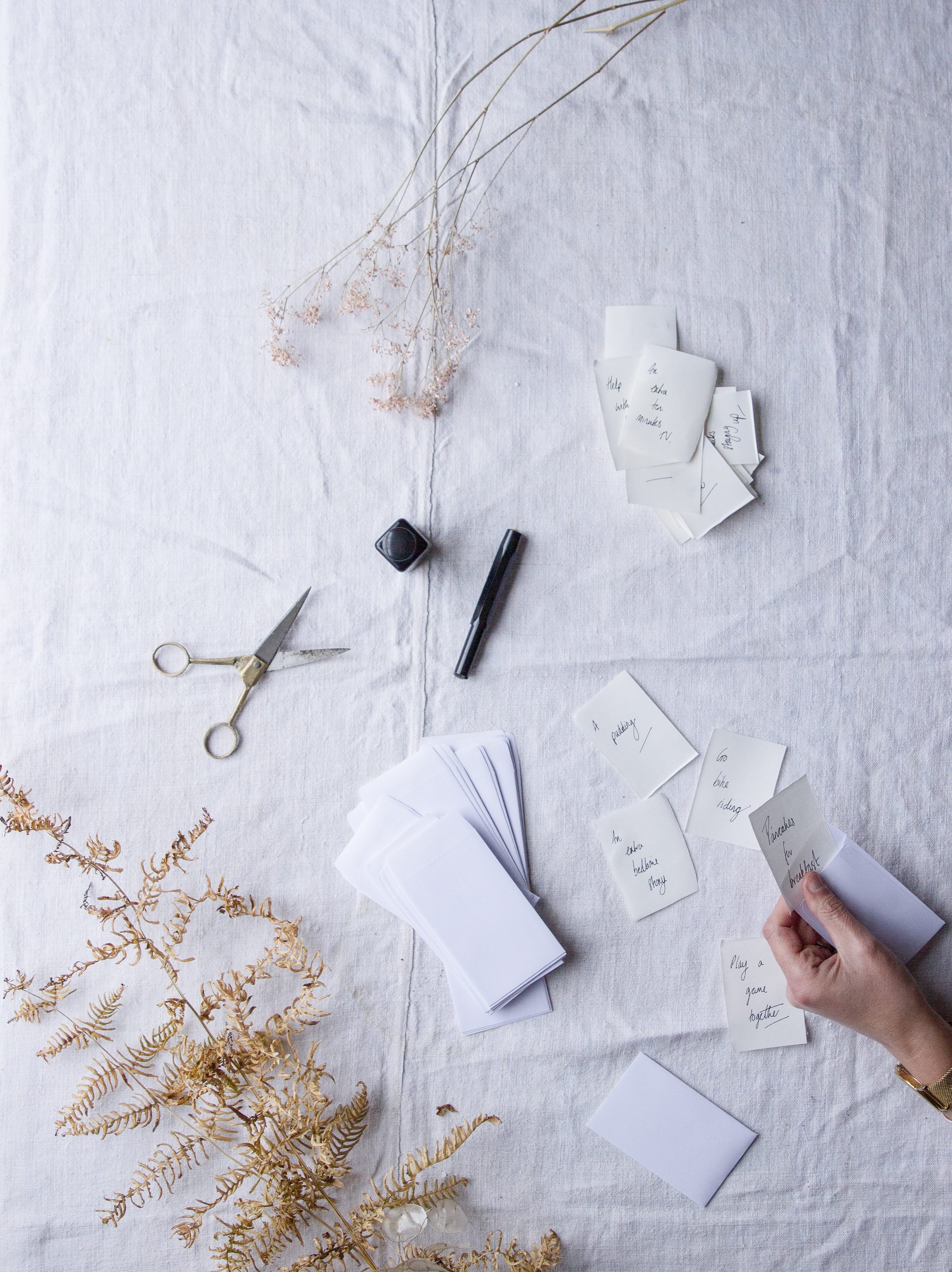 2 Write a promise on each piece of paper. You can write things like: watching a film together, making them a special pudding, a snuggle on the sofa, a day out somewhere festive, a winter picnic, hot chocolate tasting.... Customise the promises to the person that you’re making them for.